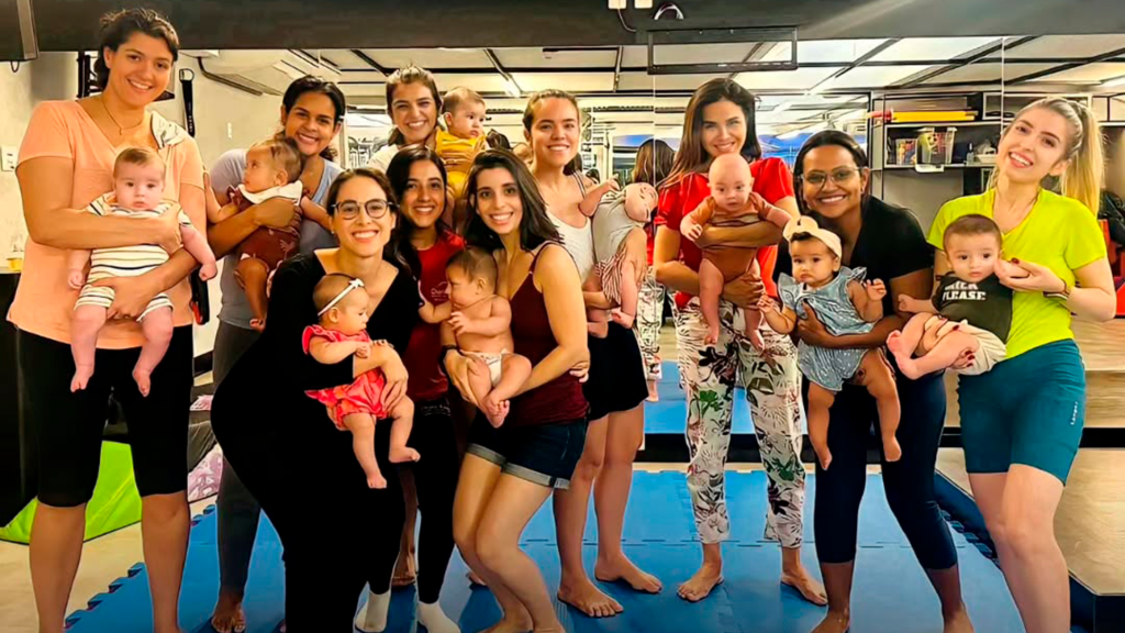 Sim! O nosso programa de pós-parto foi desenhado para que a mãe não precise se preocupar com rede de apoio para treinar. O bebê pode acompanhar a aula no carrinho ou no sling, tornando o exercício um momento de interação e bem-estar para os dois.
